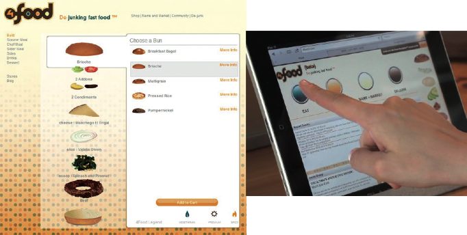 Il secondo filone della gamification in ristorazione è al puro coinvolgimento del cliente. «Un esempio è quello di 4Food, una catena di paninerie biologiche dove l’esperienza è stata letteralmente trasformata in un gioco» racconta Viola. «Sul sito ufficiale è possibile inventare il proprio panino tra centinaia di opzioni, con un’interfaccia in stile videogioco. Alla fine del processo è possibile attribuirgli un nome e da quel momento il creatore riceverà il 4% del prezzo di ciascun panino venduto sotto forma di buoni spendibili nella catena. Il segreto del successo è nell’auto-viralità: i creatori di panini condividono le proprie creazioni sui social network col doppio intento di vantarsi dell’opera e di guadagnare qualcosa. Ma la gamification prosegue anche nel punto vendita: sopra le casse ci sono dei tabelloni con la classifica settimanale dei panini più venduti e di fianco i nickname dei loro creatori».