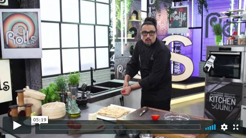 Aiutandoti con la carta forno, arrotola il pane carasau per creare un ROLLS.