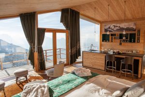 Lo spazio, progettato per offrire un’esperienza senza eguali ad alta quota, sarà prenotabile per il pubblico attraverso il portale Airbnb. Pensato per ospitare due persone, lo Chalet dichiara la volontà di integrarsi alla natura circostante, grazie alla sua configurazione e all’impiego di materiali naturali e rigorosamente locali. Gli interni, avvolti e protetti da un “guscio” continuo in pietra che ne definisce la copertura e il lato nord, grazie alle superfici vetrate continue e ad una terrazza ad uso esclusivo, si aprono sul paesaggio mozzafiato.