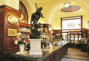 Fabio Volo ha scelto di consumare comodamente seduto al tavolo dello storico caffè Gilli: due secoli e mezzo di storia, un ambiente con soffitti affrescati e lampadari di Murano, arredi di fine 800 accuratamente manutenuti e restaurati.