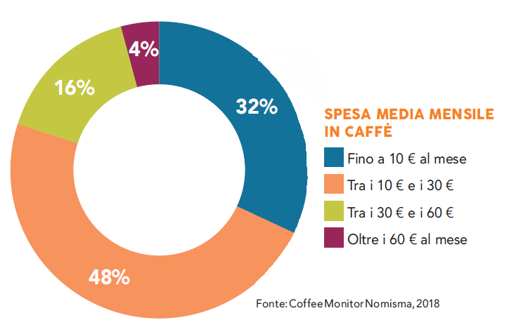 affascinò e ispirò Howard Schultz, direttore marketing e retail nonché “ideologo” di Starbucks, che decise quindi di importare negli USA i nostri “coffee bar” o quanto meno il loro afflato. Riconoscimento lusinghiero, dunque, di un saper fare italiano che continua tutt’oggi a perpetuarsi. Con l’avallo, ovviamente, dei consumatori che non fanno un mistero della loro passione per il caffè. Una passione variamente coniugata secondo modalità e occasioni di consumo diversificate. E in proposito i numeri parlano chiaramente. Come quelli del COFFEE MONITOR sviluppato da Nomisma in collaborazione con DATALYTICS, che ci racconta come il caffè (declinato in moka, cialde e capsule) sia il più gettonato, scelto dal 93% dei consumatori e responsabile di una spesa annua di 260 euro. Un bel divario rispetto a caffè americano, orzo o altre tipologie per cui la passione degli italiani è decisamente più contenuta (in questo caso, infatti parliamo di un residuale 7%).