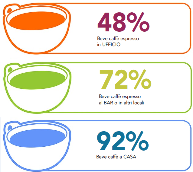 Se c’è un tempo e un luogo per ogni cosa, per il caffè le cose stanno un po’ diversamente: non solo (come abbiamo visto) ci sono tanti tempi ma ci sono pure anche molti luoghi di consumo. Tra i principali, e ce lo aspettavamo tutti, secondo il COFFEE MONITOR emerge quello tra le pareti domestiche (92%) suddiviso tra il caffè in polvere (53%) e quello in cialde e capsule (37%). In questo caso i driver di scelta sono essenzialmente di carattere organolettico per il 53% e ricollegabili al brand (19%), mentre il fattore prezzo rimane un po’ nell’ombra, indicato solo dal 15% di chi consuma caffè a casa. Dopo le pareti domestiche, il secondo luogo d’elezione per il consumo di caffè è il canale horeca (72%).