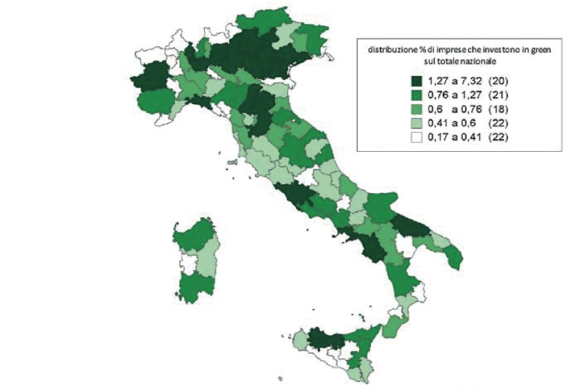%, per provincia, delle imprese che hanno investito nella green economy[/caption]