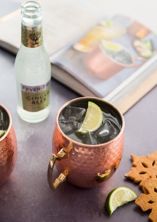 Riempi una tazza da cocktail in rame di ghiaccio e vodka. Aggiungi succo di lime fresco e Fever-Tree Ginger Beer. Infine guarnisci con zenzero fresco.