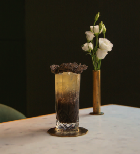 Preparazione: shakerare tutti gli ingredienti e versarli nel fashioned precedentemente raffreddato, creare il velluto con la birra ed alcune gocce di lavanda