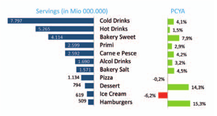 Servings e trend prodotti totale OOH – AT Giu 2018: Crescono tutte le categorie di prodotto ad accezione del gelato[/caption]