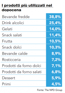 Nelle consumazioni della notte prevale il beverage. A seguire gelati e snack salati. Da segnalare il buon risultato ottenuto dalla frutta.[/caption]