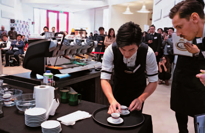 Chang Chung-Lun sotto lo sguardo attento di Fabio Dotti, giudice ed Espresso Italiano Champion 2017[/caption]