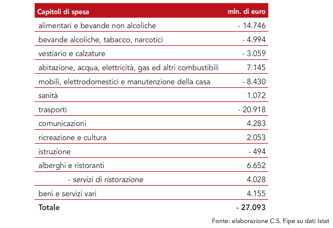 Tra il 2007 e il 2017 le famiglie italiane hanno tagliato i consumi per oltre 27 miliardi di euro a prezzi costanti, 21 dei quali nel solo comparto dei trasporti e poco meno di 15 in quello alimentare.