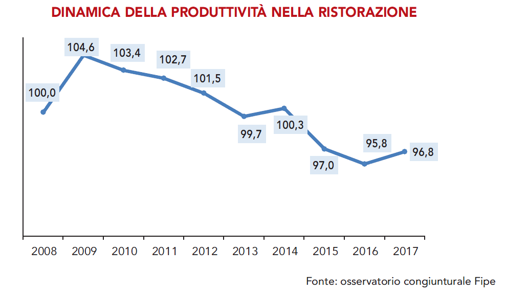 Nella ristorazione, al contrario, si è avuta una crescita di 4 miliardi di euro che ha portato il consumo alimentare fuori casa a toccare gli 83 miliardi di euro.