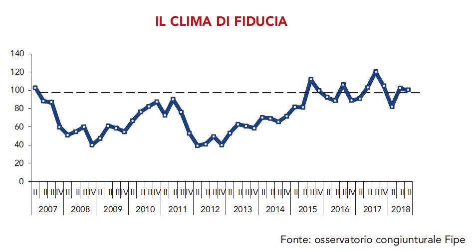 In un mercato della ristorazione che vale complessivamente in Europa 593 miliardi di euro l’Italia continua ad occupare la terza posizione dopo Regno Unito e Spagna. In Germania la ristorazione rappresenta meno del 30% del totale dei consumi alimentari, la stessa sale al 47,9% nel Regno Unito, al 55,4% in Spagna e addirittura al 58,5% in Irlanda. In Italia la quota si attesta al 35,5%, circa cinque punti percentuali al di sopra della Francia. Tra il 2007 ed il 2017 la variazione dei consumi nella ristorazione nei 27 paesi UE1 è stata positiva per circa 14 miliardi di euro. Bene, come abbiamo visto, in Italia, male in Spagna e Regno Unito dove la contrazione è stata rispettivamente pari a 5.400 e 281 milioni di euro. Nel terzo trimestre 2018 il clima di fiducia delle imprese di ristorazione è positivo (100,4) ma perde 20 punti nel confronto con lo stesso periodo dell’anno precedente. Le aspettative per l’ultimo trimestre dell’anno sono positive riguardo alle performance economiche mentre permane qualche incertezza sull’occupazione. Il valore aggiunto supera i 43 miliardi di euro. Dopo un periodo di stagnazione e poi di contrazione, a partire dal 2015 l’aggregato ha ripreso un profilo di crescita tornando sopra ai livelli pre-crisi.