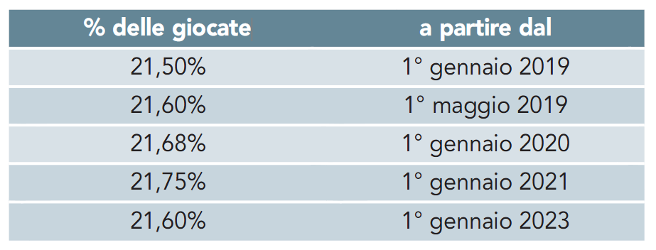 Aumenti, su aumenti, su aumenti. È la triste corsa del Prelievo erariale sulle slot, che dopo il rincaro disposto dal decreto dignità e quello successivo della Manovra, viene ora ulteriormente incrementato dal decreto sul reddito di cittadinanza. Al punto da rendere quasi incomprensibile a quanto ammonti l’attuale aliquota. Ebbene, in virtù dell’ultima legge, il prelievo sugli apparecchi comma 6a diventerebbe il seguente: