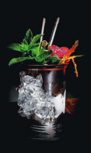 Direttamente in una Julep cup si costruisce in tre tempi, proprio come il Julep. Si decora con un ciuffo di menta, ananas disidratato, un lampone e zucchero a velo.