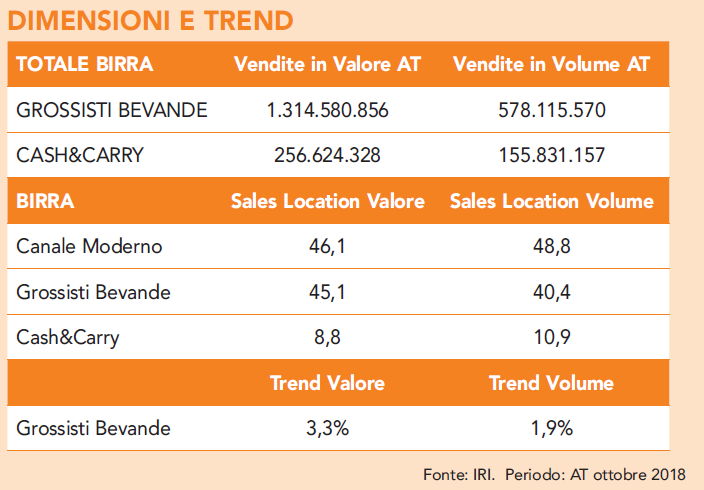 “Birra = business, almeno per i grossisti di bevande.” Ce lo garantisce Mario Carbone Business Development Manager IRI. “Basta lasciar parlare i dati per rendersene conto: con un valore di 1 miliardo e 300 milioni, per l’ingrosso beverage la birra è infatti la categoria principale, che pesa tra il 40 e il 45% sul fatturato totale e si fregia di un trend a valore decisamente interessante: + 3,3%. Un dato che non si può spiegare semplicemente con un banale aumento di prezzo.”