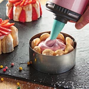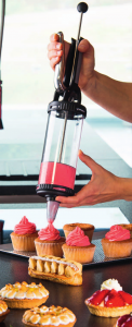 Un altro strumento indispensabile per i pastry chef è la sac-apoche. Ne esistono modelli usa e getta ma anche riutilizzabili, ma nessuna è pratica e resistente come la pistola decoratrice che ha esattamente la stessa funzione di una sac-a-poche ma la batte sul profilo della comodità. Funziona con un sistema a siringa flessibile che si adatta a seconda della quantità di liquido all’interno. Guarnire e decorare sarà un gioco da ragazzi, grazie alla facilità con cui si riempie e si utilizza, semplicemente con una pressione della pistola, lasciando uscire il flusso solo finché si applica la suddetta pressione e stoppandosi immediatamente al suo rilascio.