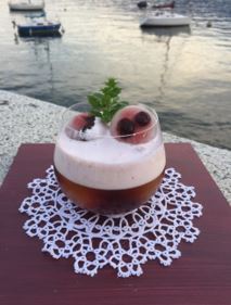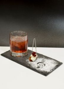 Questo cocktail parla di una storia d’amore, quello dei bisnonni di Cinzia Ferro. Sorseggiando “E raccontò… come Amare Nanà” si viene catapultati in un’atmosfera retrò dai toni romantici e dallo spirito nostalgico. Il sapore è forte e autentico, come l’anima dei primi anni del ‘900. Particolare anche l’abbinamento cocktail-cibo: una collana fatta di vere amarene, in omaggio al primo regalo che il bisnonno fece alla sua innamorata.