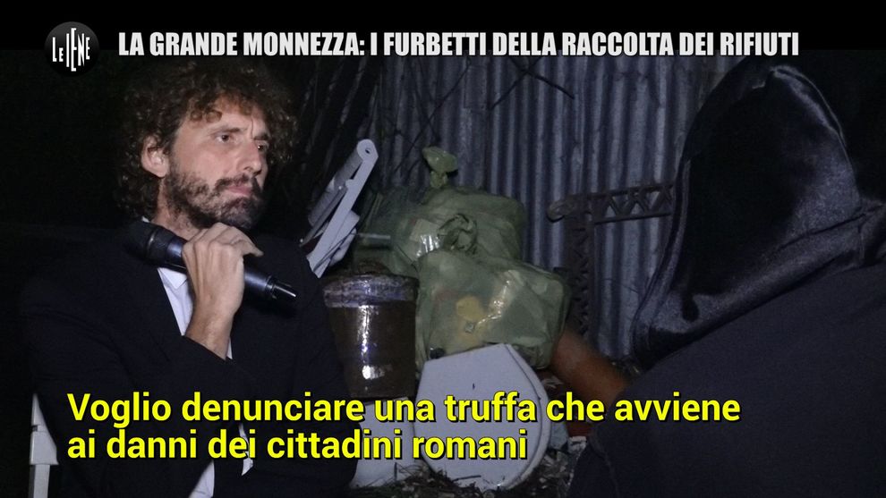 il servizio, intitolato "La Grande Monnezza: i furbetti della raccolta dei rifiuti", parte da una denuncia raccolta da Filippo Roma per strada davanti a un cumulo di rifiuti nella Capitale. Davanti a lui c'è una persona: "Che cosa ci vuoi denunciare?", domanda Filippo Roma. "Voglio denunciare una truffa che avviene ai danni dei cittadini romani per quanto riguarda la raccolta differenziata dell’immondizia", risponde l'interlocutore ripreso di spalle.