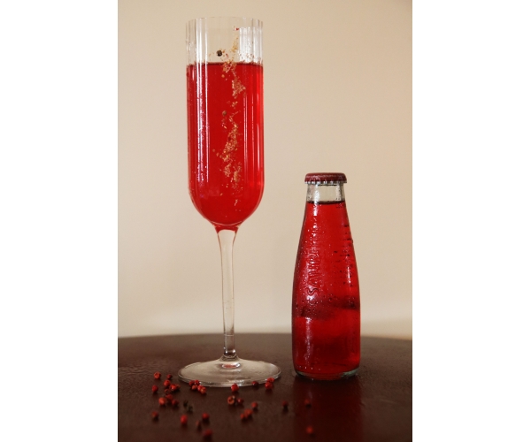 Versare in un flûte 3 cl di mezcal, 1,5 cl di vermouth macerato al pompelmo e al bergamotto e 1 barspoon di marmellata di zucca e pepe rosa. Dopo aver shakerato e filtrato il tutto, per togliere i grumi della marmellata, aggiungere al flûte3 cl di Sanbittèr Rosso. Per guarnire, spennellare un lato del flûte con del sale alla zucca aromatizzato al pepe rosa.