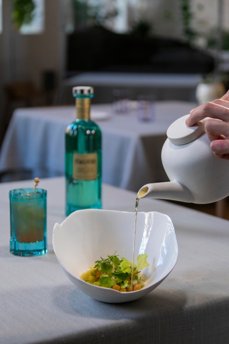 Seppie e piselli (seppie alla veneta) è una ricetta tipica della tradizione regionale italiana che Daniel propone in chiave contemporanea, valorizzandola con una citazione artistica. Un ragù di seppie e piselli si nasconde sotto a un foglio sottile realizzato con le seppie e la clorofilla di prezzemolo. Per rendere visibile il contenuto si riprende l’idea del taglio come nelle opere di Lucio Fontana: il piatto viene infatti completato al tavolo incidendo il mantodi seppie e lasciando intravedere ciò che nasconde.