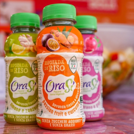 La loro connotazione dolce si abbina perfettamente con il caffè, cosa che rappresenta un’assoluta novità, offrendo una gustosa alternativa, più leggera e digeribile, al latte vaccino. Ma OraSì è presente nel canale bar anche con le Rugiade di Riso, bevande semplici e dissetanti, a base di riso italiano di filiera – raccolto nell’azienda agricola di Fiscaglia (FE) di proprietà di Unigrà – , senza allergeni né lattosio, senza zuccheri aggiunti e senza grassi, per un nuovo concetto di bevanda vegetale capace di coniugare la naturalità e leggerezza del riso alle proprietà benefiche della frutta e delle spezie. Una proposta disponibile in una pratica bottiglietta PET da 250 ml pensata per un consumo “ready to go” che rappresenta una sana alternativa agli snack ipocalorici e una inedita soluzione per rinfrescarsi nelle calde giornate estive adatta anche per celiaci e intolleranti al lattosio. Le Rugiade di Riso sono attualmente disponibili nelle referenze Limone e Zenzero, Melograno e Goji, Passion Fruit e Curcuma.