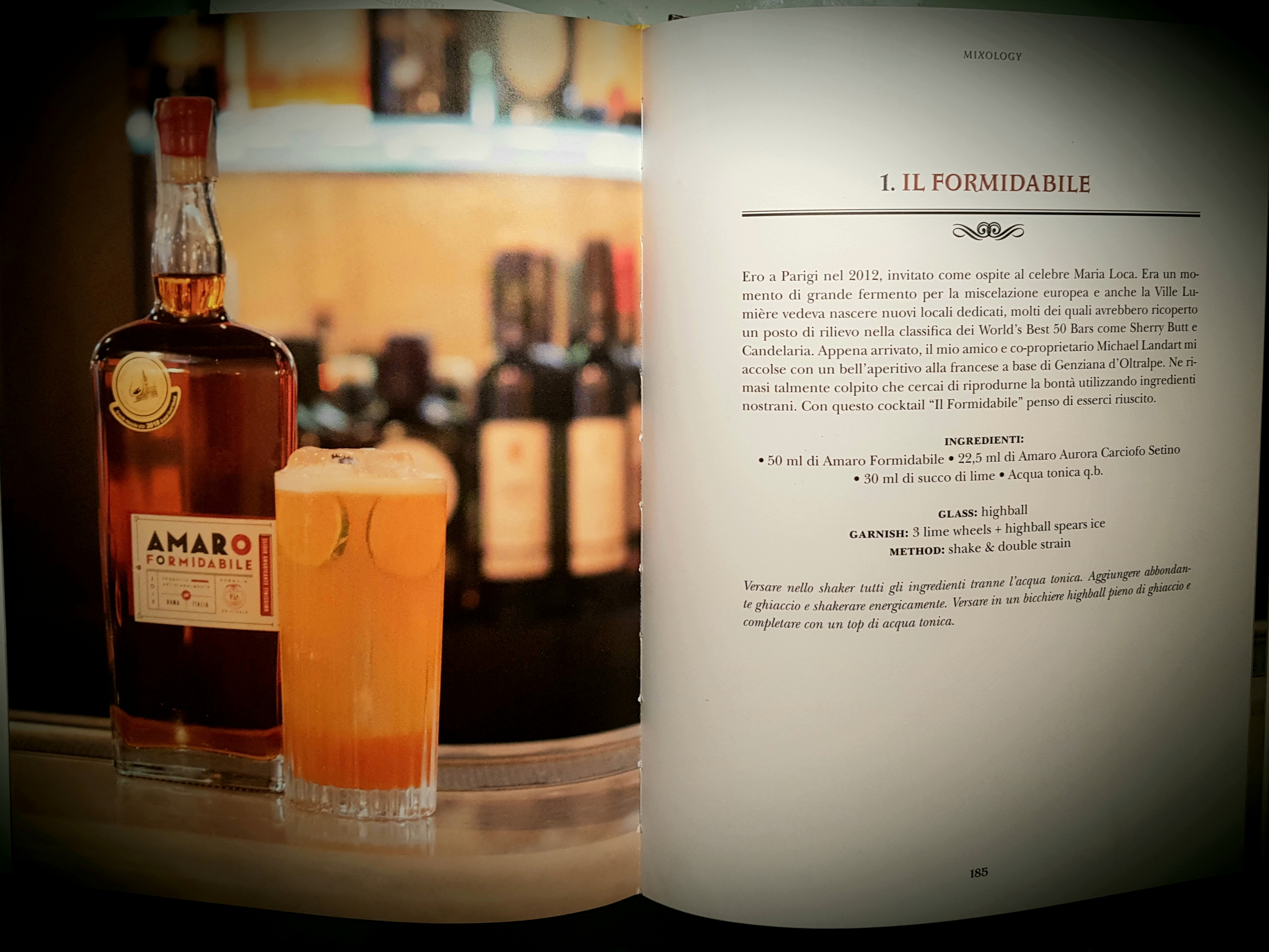 Alcune sono firmate da me, come Il Formidabile (con 50 ml di Amaro Formidabile, 22,5 ml di Amaro Aurora Carciofo Setino, 30 ml di succo di limone e top di acqua tonica) o il Fra’ Bastiano (con 22,5 ml di Amaro Montenegro, 45 ml di Bourbon Whiskey, 22,5 ml di succo di limone, 7, ml di estratto di zenzero, 22,5 ml di sciroppo di miele -80:20- e top di Angostura). Altre sono state inventate da colleghi e non manca un classico: l’Alaska nella versione di Andrea Cardinale con il Centerba Toro Forte al posto di Chartreuse gialla.