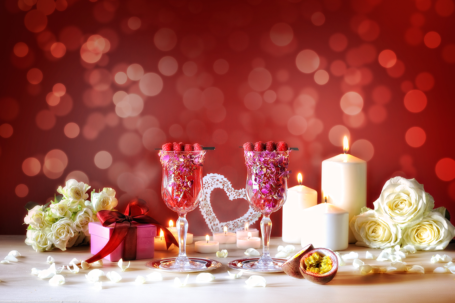 Per un momento di autentica passione non poteva mancare un cocktail al frutto della passione, Amor ed Emozioni, preparato con Sanbittèr Emozioni di Frutta al Passion Fruit unito ad un infuso ai fiori di Ibisco e succo di lime. I petali lilla immersi nel rosso della bevanda ed i lamponi freschi ad adornare il bicchiere donano a questo aperitivo il sapore e l’aspetto per regalare e regalarsi un momento unico di vero romanticismo.