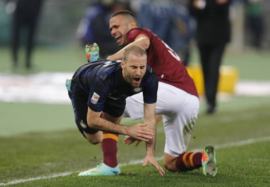 Entrata di Leandro Castàn (Roma) su Rodrigo Palacio (Inter)[/caption]