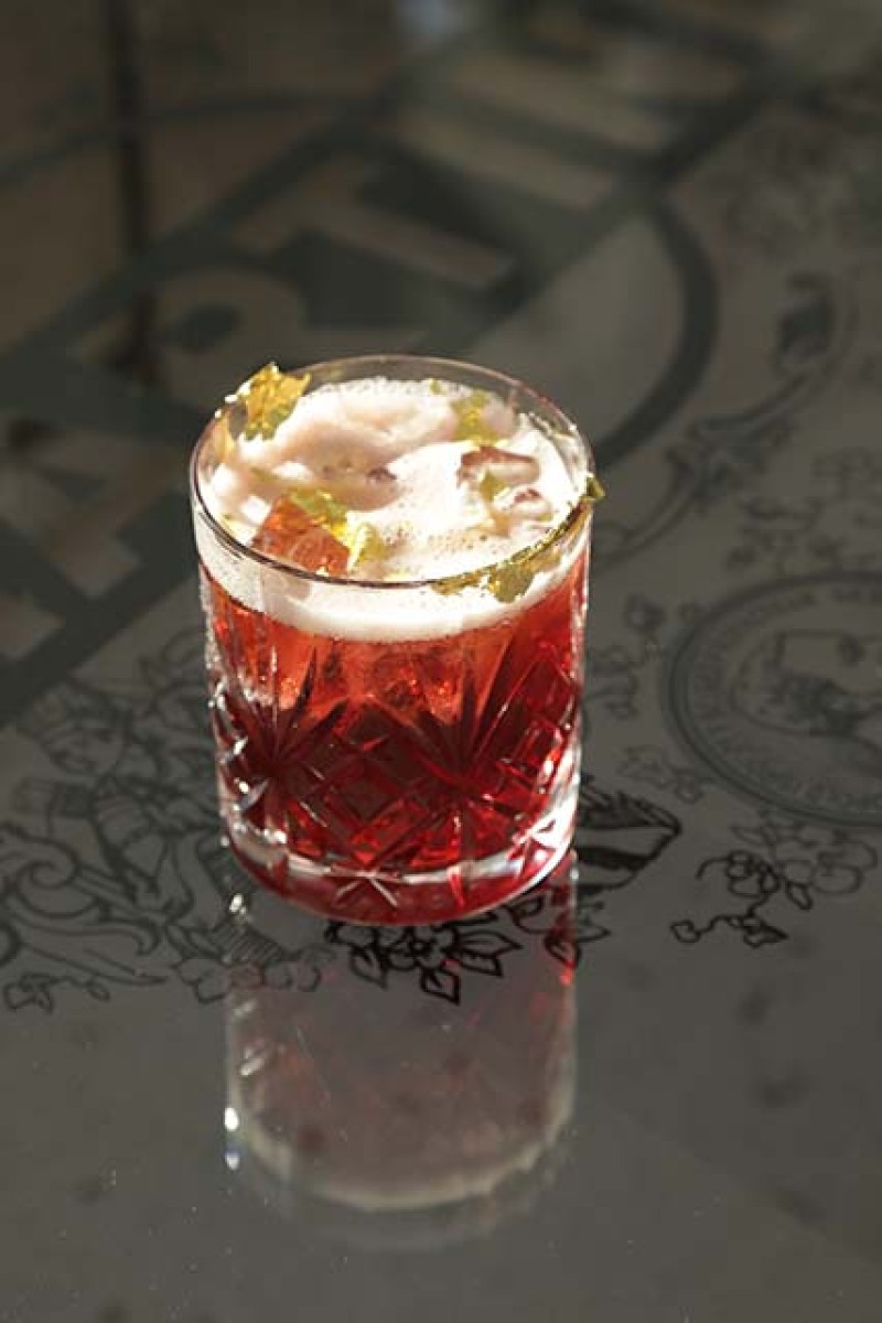 Versare il vermouth e il bitter nello shaker e shakerare. Mettere il ghiaccio nel tumbler, versare il contenuto dello shaker e aggiungere uno splash di soda, non riempendo completamente il bicchiere. Prendere con una pinza un cubo di ghiaccio, passarlo nella foglia d’oro in modo che aderisca bene e appoggiarlo all’interno del bicchiere.