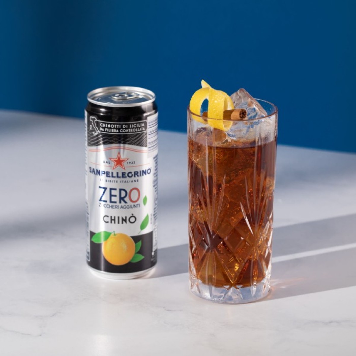 Primo tra i cocktail è Sanpellegrino Black Vanilla Sour, dove il sapore intenso di Chinò Zero Sanpellegrino si sposa al gusto dell’infuso di the nero e vaniglia, il tutto reso più fresco dal succo di limone e dalla sua scorza che, con della cannella in stecca, chiude la ricetta.