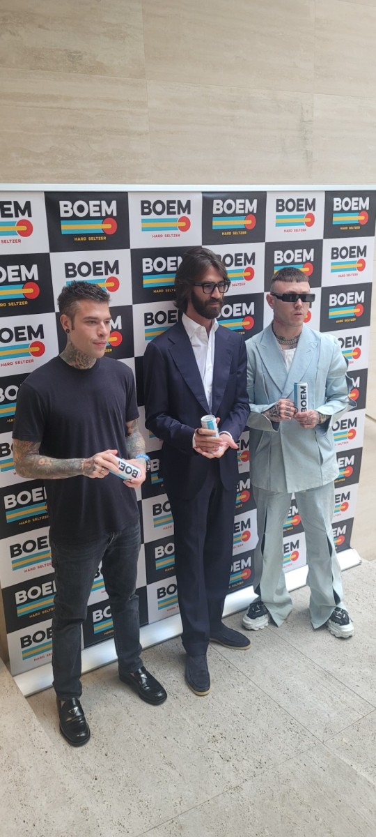 Si chiama Boem il nuovo hard seltzer creato da un team d’eccezione che vede in prima linea Camillo Bernabei, Leonardo Maria del Vecchio e i rapper Fedez e Lazza. La nuova bibita è stata presentata a Milano, da Vesta in zona Brera: si tratta di un drink per gli over 18, caratterizzato da un basso contenuto alcolico (al 4,5%) e un tasso calorico di 91 kcal in una lattina da 330 ml, disponibile con il primo gusto zenzero nel canale Horeca da giugno 2023 (e nel canale Gdo dal 2024).