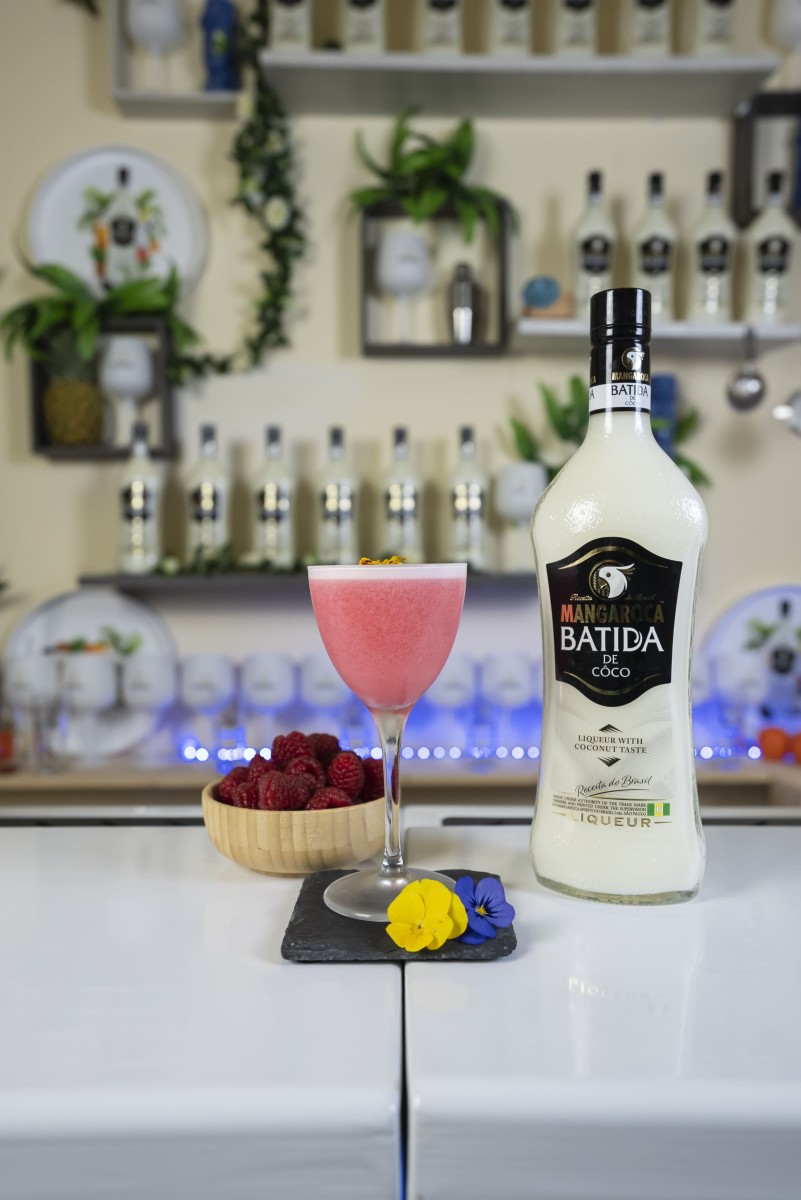 Shakerare i lamponi con il succo di lime, Rum, Mangaroca Batida de Côco e zucchero liquido. Prima di versare il drink in un bicchiere Nick & Nora, filtrare ulteriormente il succo con un colino, quindi servire con una guarnizione di fiori eduli.