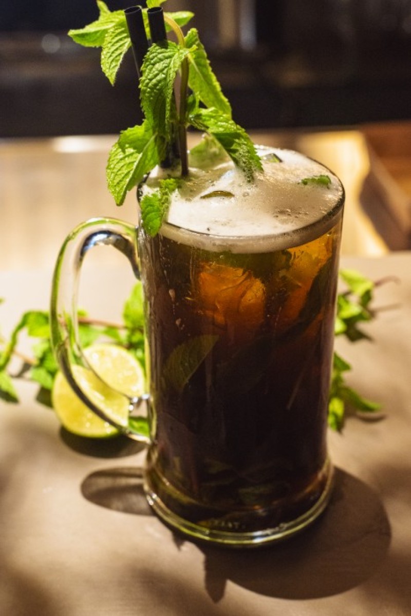 Garnish: mezzo lime spremuto con angostura e cima di menta