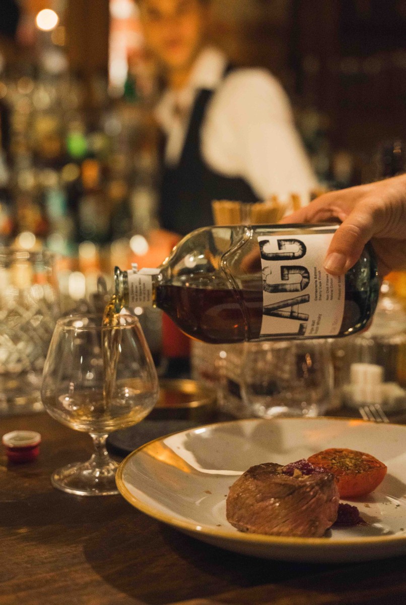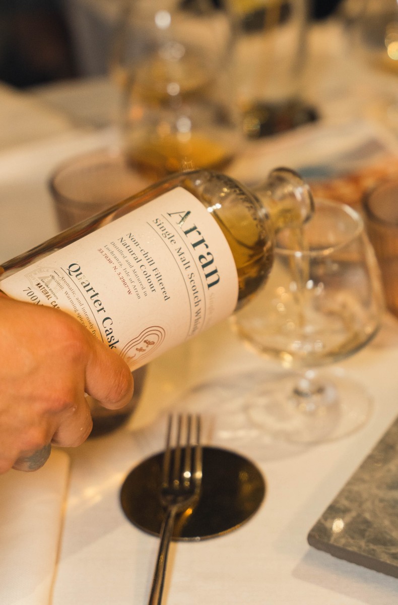 Il bis di novità si completa con il Single Malt Corriecravie (70 euro), a sua volta viene fatto maturare in rovere ex Bourbon, ma con un passaggio di affinamento supplementare di 6 mesi all’interno di botti Hogsheads ex-Sherry Oloroso, provenienti direttamente dalla cantina del suo produttore, Miguel Martin, situata a Jerez, per uscirne definitivamente a 55% vol. In fase di assaggio emergono all’olfatto sentori di cioccolata amara e frutti rossi, sprigionando in bocca note lievemente pungenti di brace amalgamate a quelle che ricordano la nocciola.