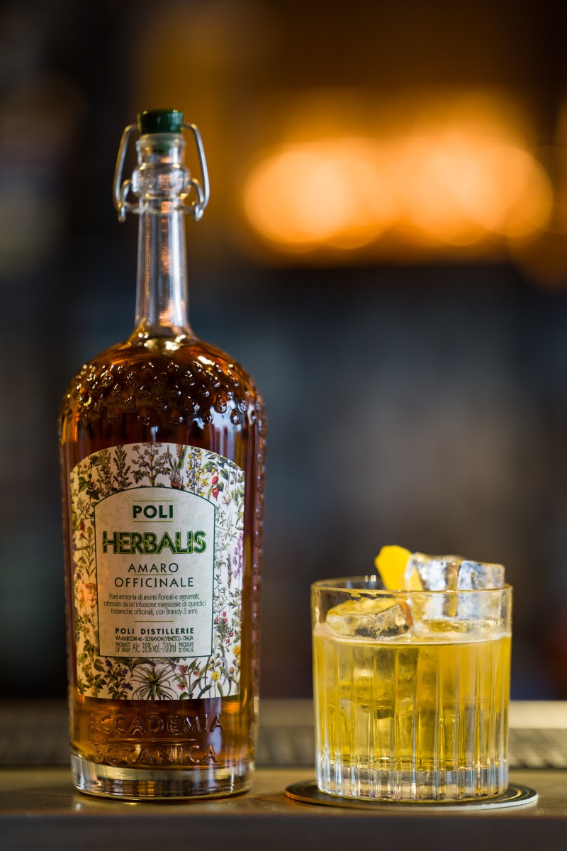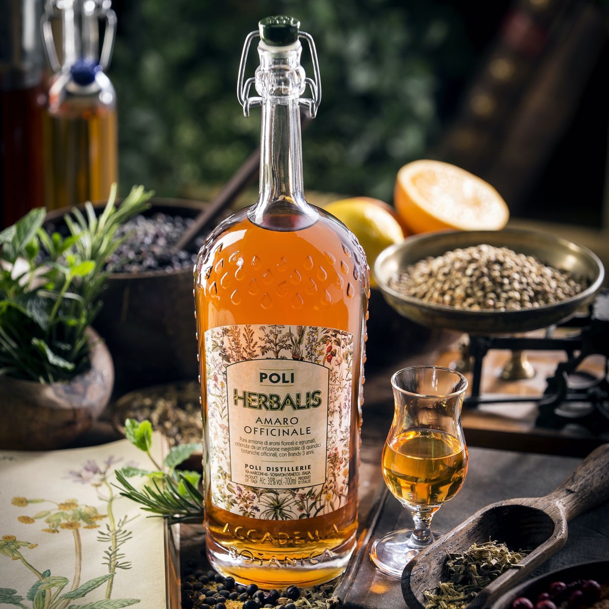 Herbalis va ad affiancare lo storico Vaca Mora, l’amaro di stile galenico a base di radici e spezie creato dal fondatore della distilleria, Gio Batta Poli. A distanza di 126 anni, Jacopo Poli propone ora un amaro dallo stile fresco e mediterraneo, uno stile individuato anche grazie agli stimoli del team di Meregalli Spirits, che distribuisce i prodotti Poli da oltre 35 anni. La struttura aromatica del nuovo amaro è frutto della fusione armonica di cinque note organolettiche fondamentali: percepiamo innanzitutto le note agresti e mentolate, date dal rosmarino, dalla salvia, dalla menta e dall’origano; poi arrivano le note agrumate dell’arancio dolce, dell’arancio amaro e del limone; a seguire le sensazioni anisate e dolci del coriandolo, della liquirizia e del finocchio; poi quelle balsamiche e resinose del cardamomo e del ginepro ed infine quelle amaricanti dell’assenzio romano, del carciofo e dell’abrotano.