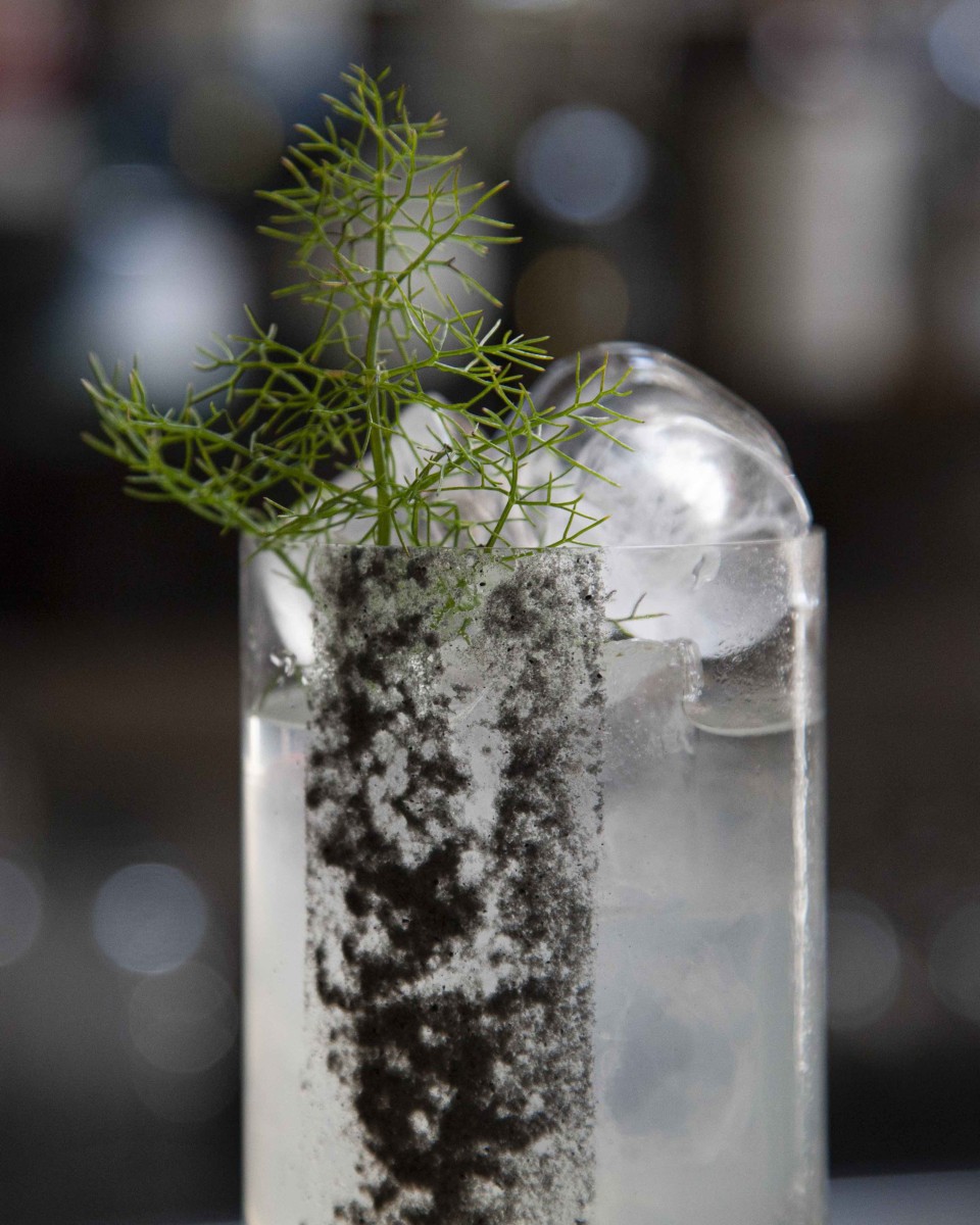 «L’idea è scaturita quasi per caso, quando ho visto uno scatto di Sara - racconta Paolo Sanna -. Quasi una folgorazione, perché ho capito quanti dettagli l’obiettivo di una camera e l’arte fotografica possano catturare, particolari impercettibili eppure fondamentali nella visione di un oggetto. Ho voluto quindi creare un menu che offrisse agli ospiti una nuova prospettiva, non solo gustativa, che ne stimolasse la comprensione. Un progetto portato avanti all’unisono, in cui l’occhio del fotografo ispira la mano del bartender e viceversa. Così lo scatto del finocchietto selvatico ambientato come fosse in una selva scura, illuminato dai bagliori delle gocce di brina mi ha dato l’idea del mio Dark Fennel, dove la classica crusta di sale è sostituita da una striscia di sale di Trapani e carbone vegetale, a richiamare il mare su cui si affaccia Monaci delle Terre Nere e il terreno nero dell’Etna, e il finocchietto è usato in tre diverse declinazioni: garnish, tintura e sciroppo».