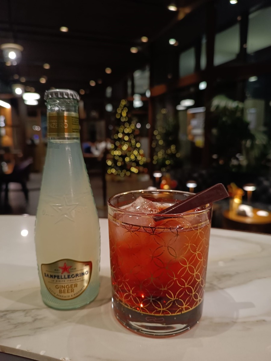 Con l’obiettivo di accompagnare le serate invernali, Pausa offre sapori avvolgenti e note fresche, combinando ingredienti come l’Everleaf Forest, aperitivo dalle note erbacee, e il Roots Divino Rosso, vermouth analcolico che aggiunge un tocco speziato e dà il colore aranciato al cocktail. In più, lo Sciroppo di Biscotto al Cioccolato Monin arricchisce la miscela con sapori dolci, e la Ginger Beer Sanpellegrino bilancia e completa il mix.