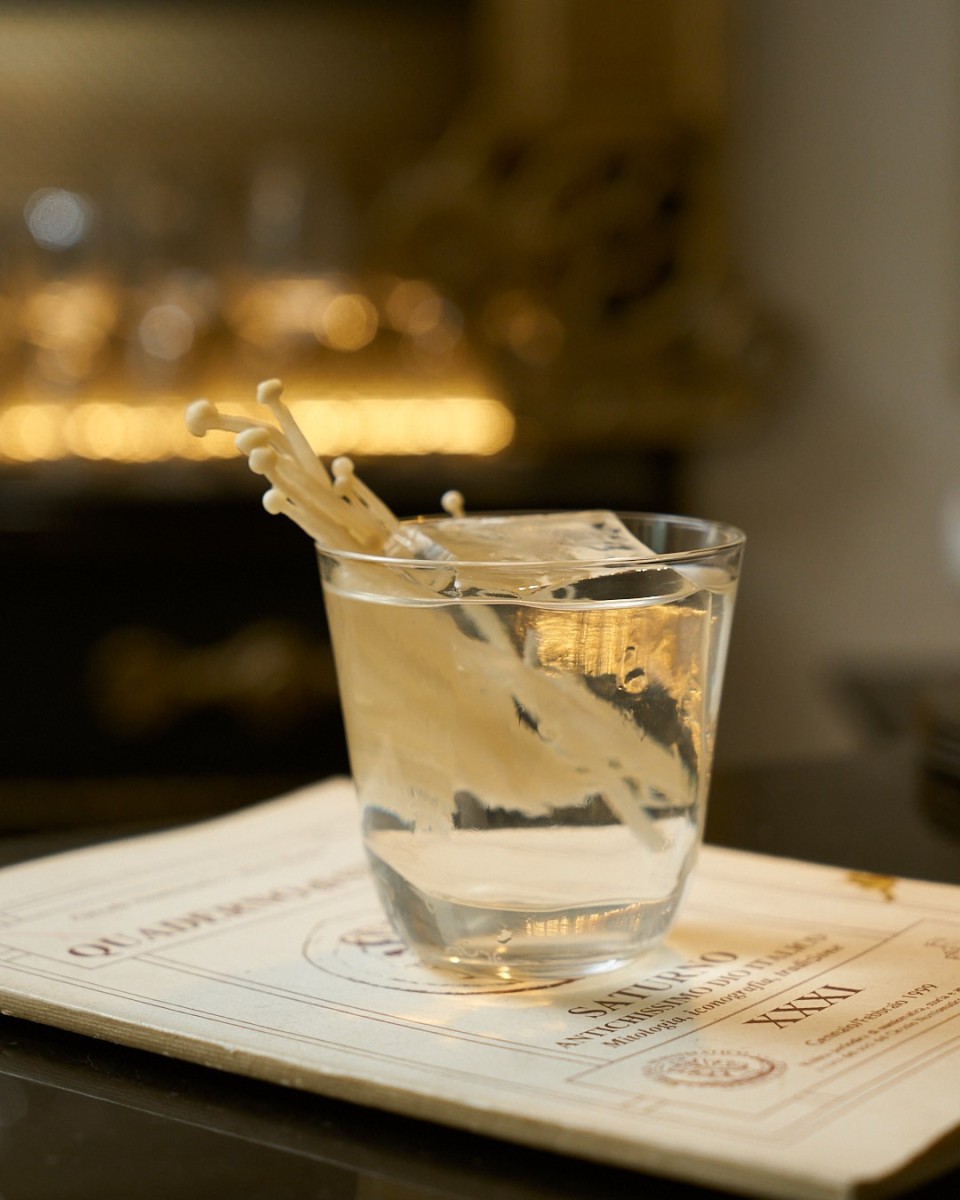 Ma non solo. Il sussurro si ispira alla leggenda di Santa Luciella e del suo teschio con le orecchie, che custodisce i segreti dell'aldilà, ascoltando preghiere e sussurri disperati. Il Bombay gin ridistillato ai funghi enoki, presenti anche nel bicchiere, simboleggia la connessione con il mondo sotterraneo, mentre banana e kiwi conferiscono dolcezza. In aggiunta, anche il vermouth Noilly Prat.