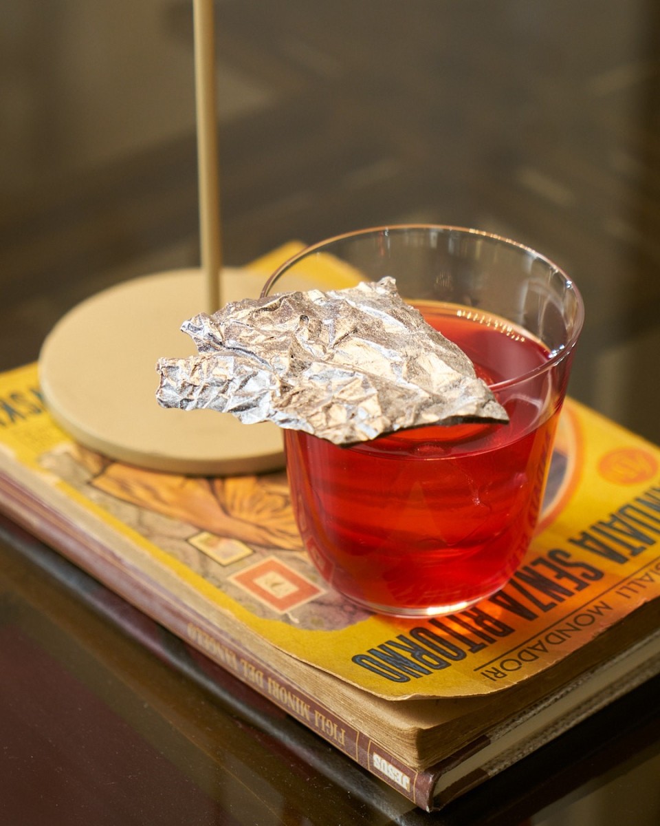 «Elisir di Port’Alba celebra lo spirito ribelle e la connessione con le arti oscure della strega di Port’Alba Maria - spiega il bar manager -. La base alcolica del cocktail è un mix di gin con botaniche giapponesi, cachaca e Oloroso Sherry, arricchita da un finto pomodoro con burro di cacao e passion fruit, quest’ultimo presente anche all’interno del finto pomodoro, insieme alla pasta di nocciole. La presenza del pomodoro finto è un omaggio alla doppia natura della figura, quella di donna e strega, rappresentando l'illusione che la circonda».