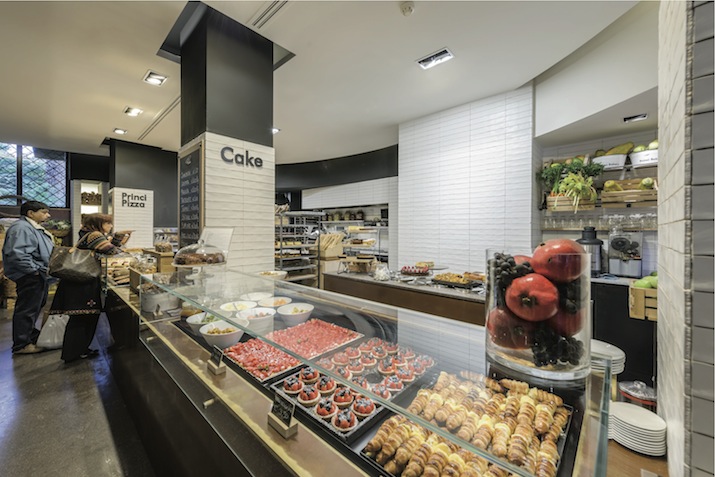 Tre percorsi food con partenza dalla Coffe Pastry, dall’atmosfera decisamente internazionale, passaggio nella zona cake e pasticceria, per finire con bakery e Princi pizza. Oltre il bancone, i laboratori rigorosamente a vista: la zona centrifugati, la piccola cucina per la preparazione dei piatti veloci e ovviamente l’area per la panificazione, con il massiccio forno a legna in ghisa a ricordo del passato. Pareti e colonne del locale sono ricoperte da eleganti ceramica bianca e rovere invecchiato e sono state scelte per la parete dell’area caffetteria.