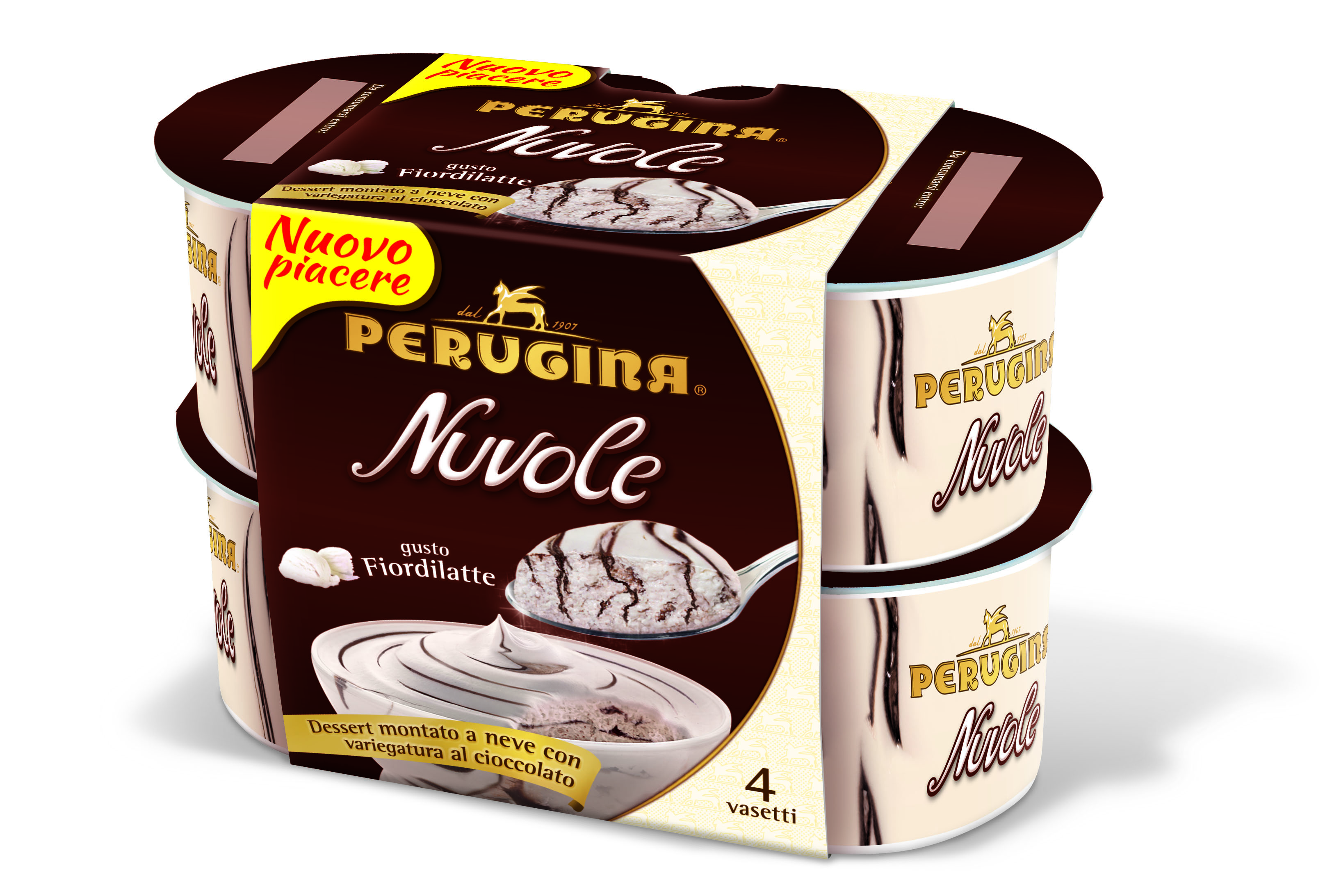 montato a neve caratterizzato da una consistenza particolarmente soffice e leggera che si scioglie al palato per offrire una nuova unica sensazione di piacere. La gamma si compone di due gusti: Perugina Nuvole al Cioccolato al latte e Perugina Nuvole al gusto Fiordilatte.