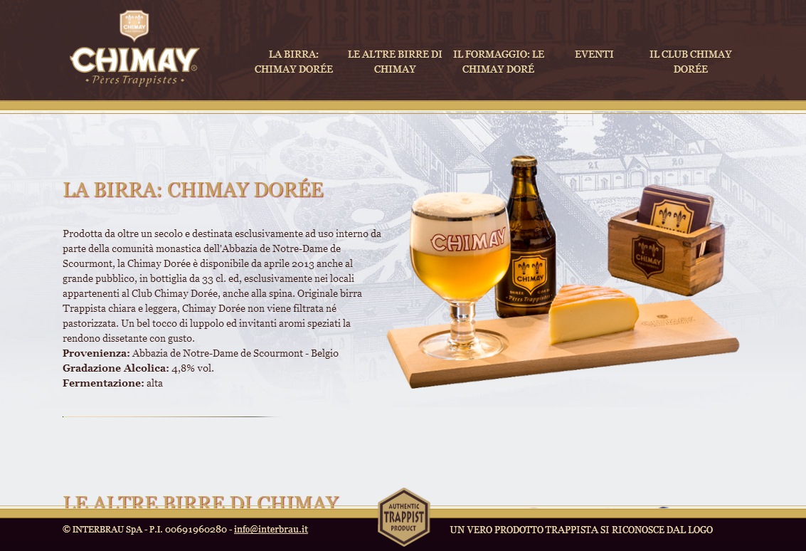 Monastero Trappista di Chimay. Ecco quindi che i locali ufficiali del Club Chimay Dorée 2014, dove ordinare una Chimay significa vivere una esperienza nel nome della tradizione birraria Trappista belga, sono stati premiati nella prestigiosa sede dell’Hotel The Bauers, affacciato su Piazza San Marco a Venezia (un’ampia galleria fotografica dell’evento sarà presto disponibile sui profili Facebook di Chimay ed Interbrau). Nell’occasione, Chimay ed Interbrau hanno presentato anche il nuovo sito web dedicato al Club Chimay Dorée, raggiungibile all’indirizzo www.clubchimaydoree.it, dove sarà possibile trovare anche la lista aggiornata dei locali appartenenti al Club.