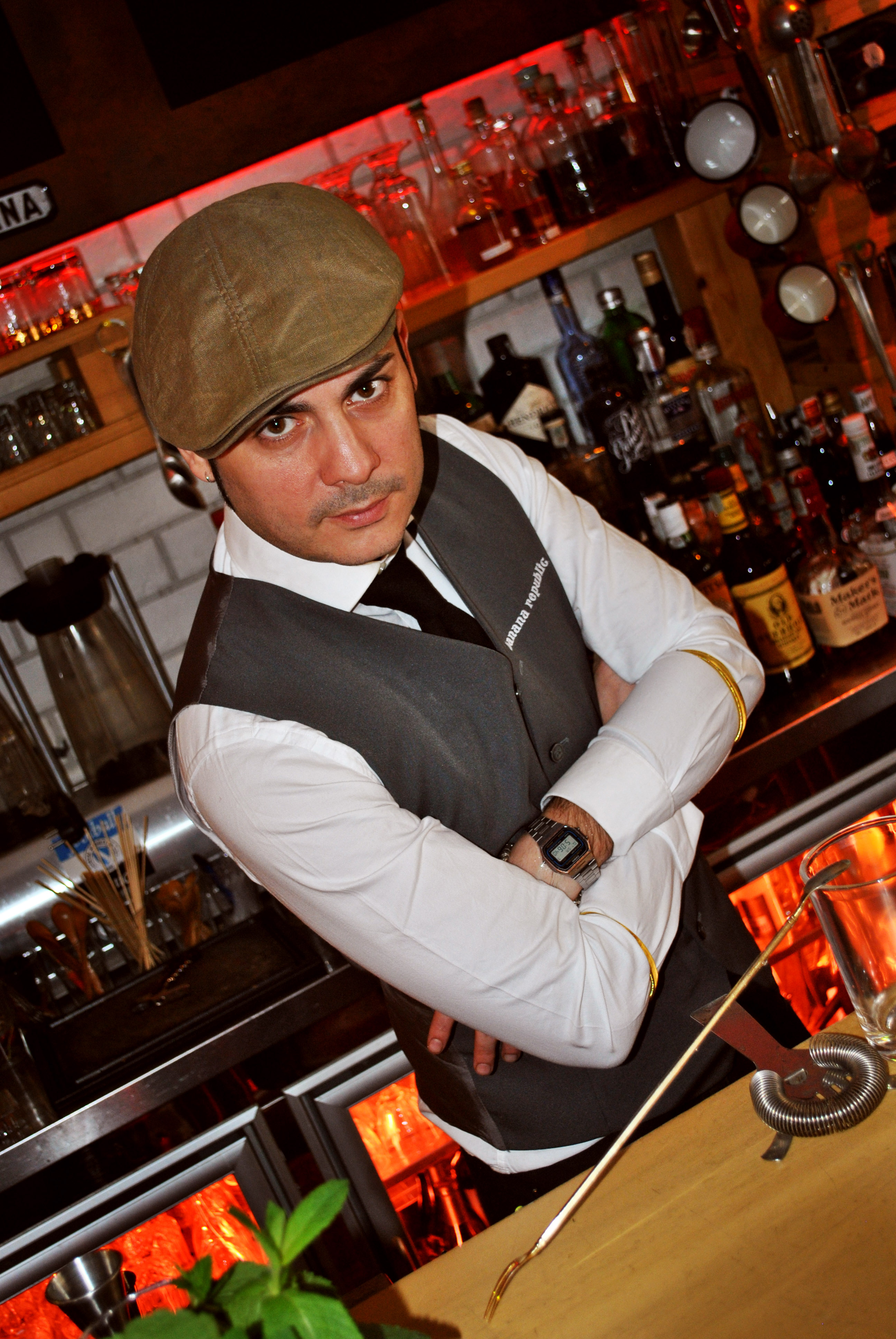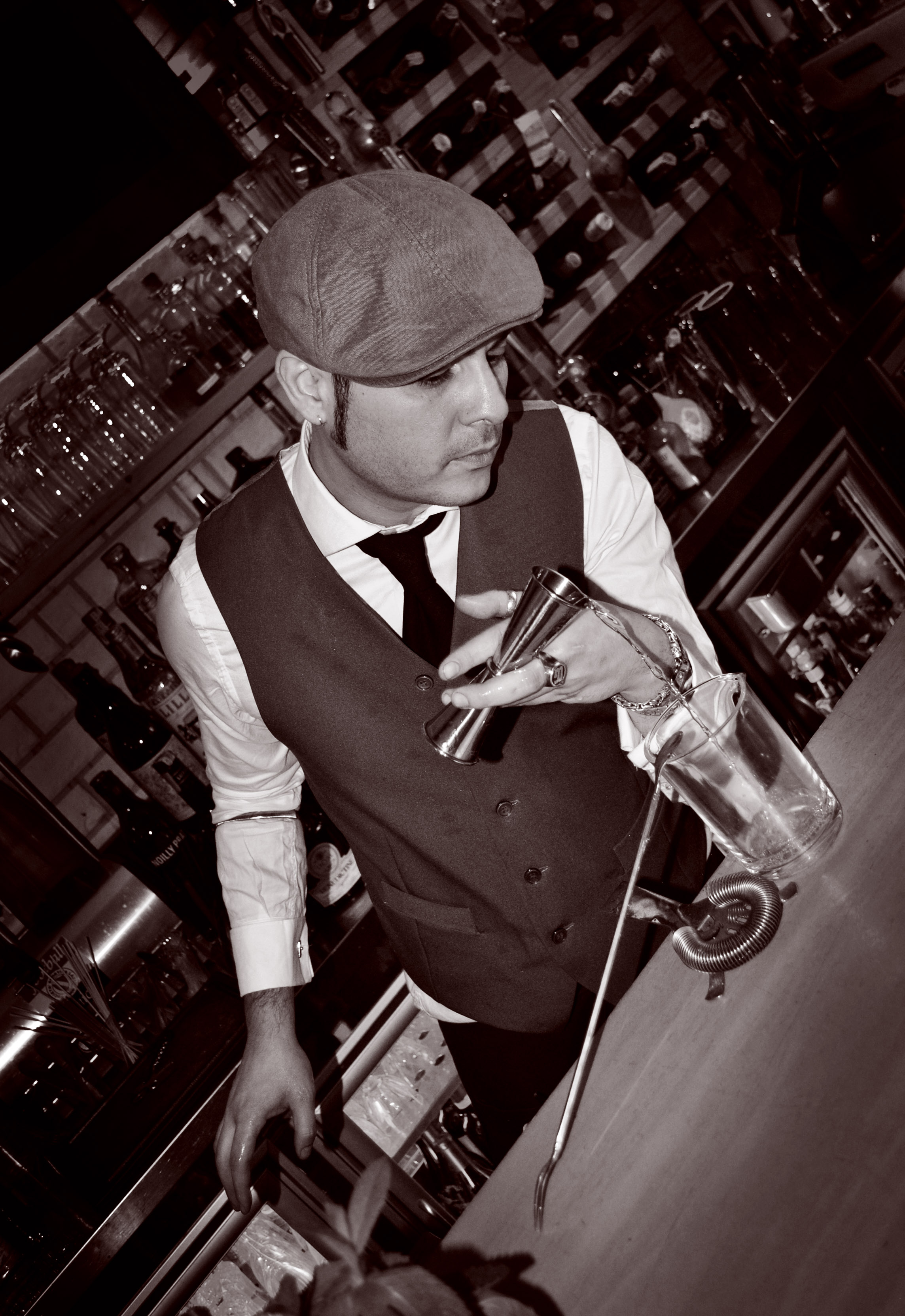 Che sia una coppola o un borsalino, il suo stile da bartender è sempre ineccepibile.