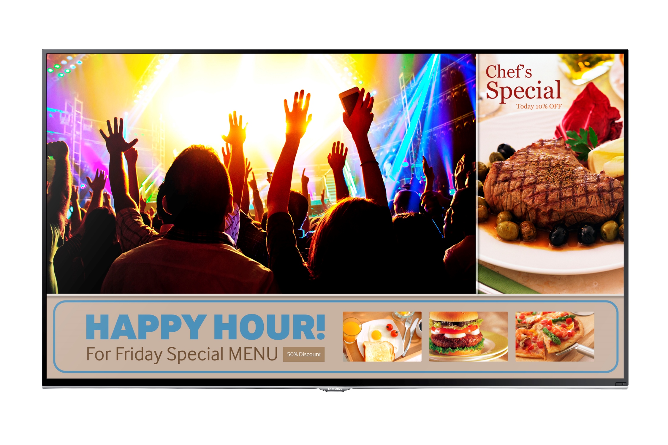 Usando Samsung Smart Signage TV, la creazione e la distribuzione di materiali promozionali personalizzati - compresi diversi tipi di contenuto su un unico schermo - è inoltre facile e conveniente. Il software per la gestione dei contenuti MagicInfo Express consente, infatti, ai commercianti di aggiornare facilmente ed efficacemente i clienti con informazioni sugli sconti, gli orari di apertura degli esercizi, eventi e altri contenuti utili. Il software consente, infatti, di creare, pubblicare, gestire e programmare in qualsiasi sequenza e in ogni momento ogni tipo di contenuto.