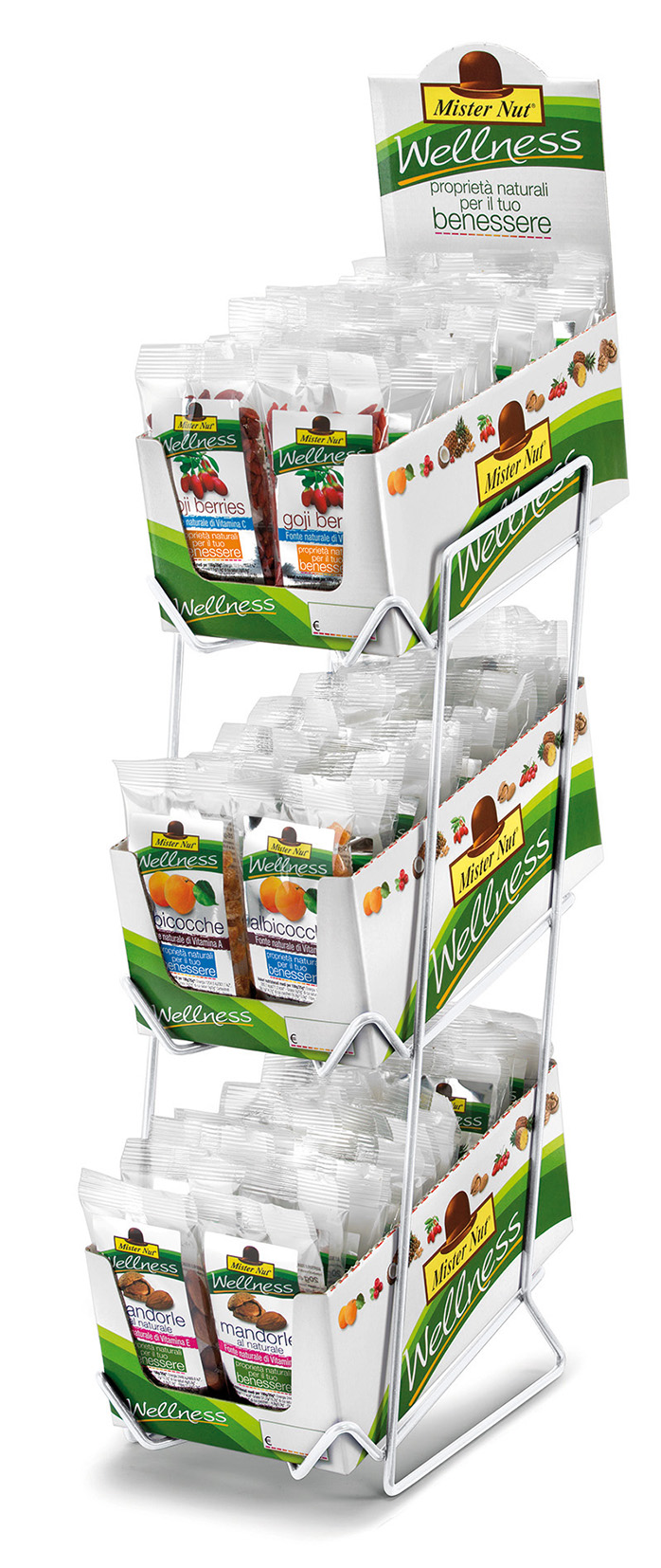 Per il canale Gdo è invece arricchito da un packaging di impatto sullo scaffale e funzionale per il consumatore, per l’insegna e per il repartista: le confezioni sono trasparenti per evidenziare la qualità delle materie prime e veicolare concetti di igiene e salubrità; la grammatura adottata (80-125 gr.) rende i prodotti della linea adatti sia alle grandi che alle medio-piccole superfici di vendita; il sovraimballo tray box semplifica le operazioni di caricamento e tenuta scaffale e può essere inserito nell’ apposito espositore da terra. La linea Mister Nut Wellness al momento è stata introdotta presso Coop, Conad, Pam, Chef Express, Il Gigante e gruppo C3, e sul canale Vending nel Gruppo Argenta e IVS, per la ristorazione presso Camst.