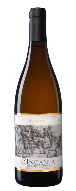 Il Trebbiano d’Abruzzo Dop C’Incanta quest’anno fa il bis, ottenendo per il secondo anno consecutivo il premio Tre Bicchieri della Guida Vini d’Italia del Gambero Rosso. Nato in occasione dei 50 anni dalla nascita di Cantina Tollo, il Trebbiano d’Abruzzo Dop C’incanta è un bianco a fermentazione spontanea non filtrato - come nell’antica tradizione contadina - che richiama gli anni Sessanta. Una sperimentazione avviata nel 2008 su un vitigno autoctono abruzzese, il Trebbiano, capace di riservare grandi sorprese a chi ne sa esaltare al meglio le caratteristiche. Un vino che richiama la tradizione anche nell’etichetta, dove è raffigurata una scena della festa dei “focanoi”, che in passato sanciva la fine della vendemmia.