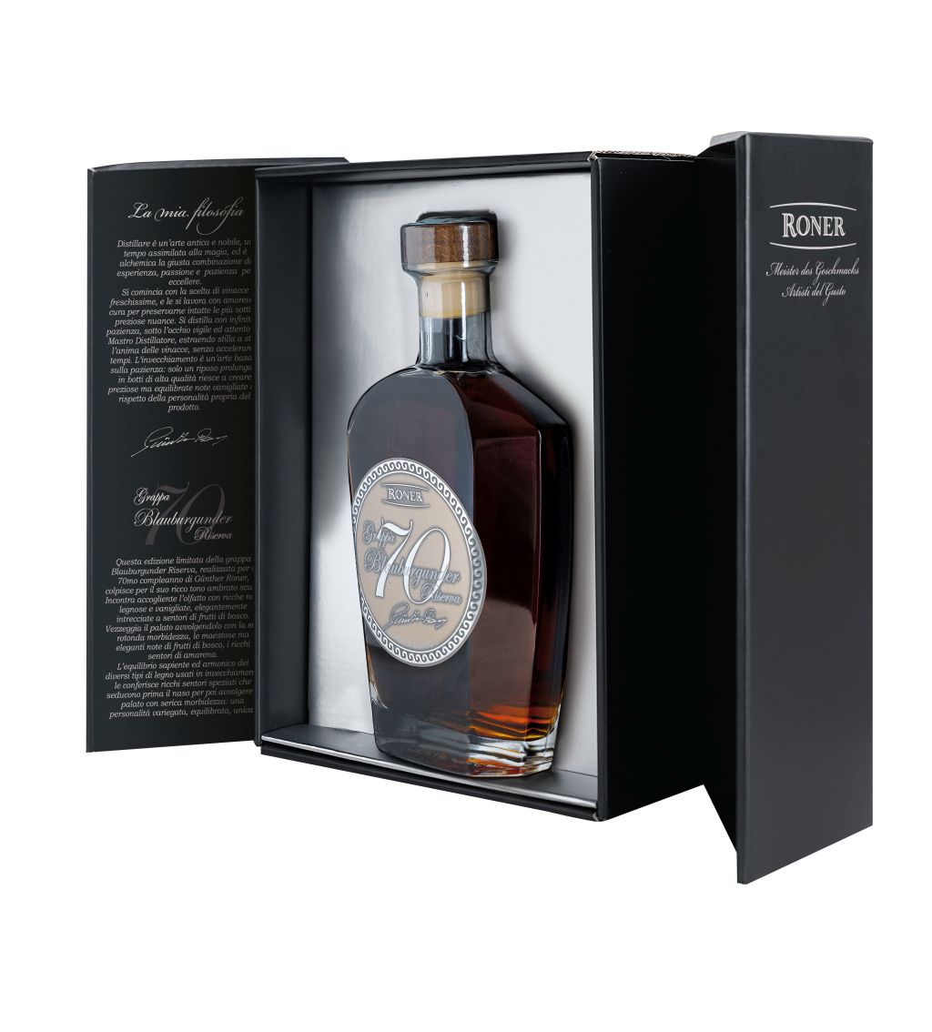 In occasione dei suoi 70 anni, Roner dedica a Günther Roner, esponente della seconda generazione della famiglia proprietaria dell’azienda e responsabile di produzione vice presidente, una nuova grappa di Pinot Noir Riserva in edizione limitata che racchiude in sé tutta l'esperienza e la passione per l'arte antica e nobile della distillazione. Un’arte che Günther negli anni ha coltivato e perfezionato tendendo sempre all’eccellenza e provvedendo a trasmetterla con grande maestria. Solo vinacce freschissime, lavorate con amorevole cura per preservarne intatte tutte le nuance ed estrarne l’anima goccia dopo goccia, con pazienza e