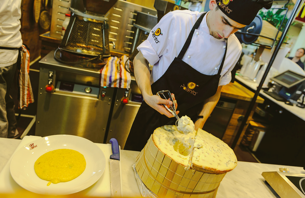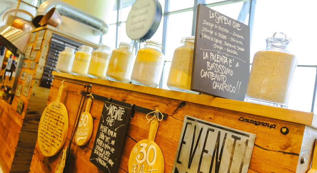 taragna e stinco o polenta e costine, si affiancano a ricette originali, Berghem Burger, polenta nera e baccalà, fino a sfiorare mondi che nella mentalità comune non hanno nulla a che fare con la farina di mais come la Lasagna di polenta e il sushi di polenta. Lo spazio dedicato alla polenta si allinea alla proposta semplice e genuina della cucina, con un allestimento che utilizza materiali naturali e semplici, legni non trattati e ceramiche, e mette in vetrina le macchine, appositamente studiate e realizzate per questo format, dove seguire in diretta lo spettacolo della polenta e la sua manipolazione. E la scelta di Costa Group? «La sensibilità nello svolgere in modo non banale un compito difficile: rendere contemporanea, facilmente comprensibile e adatta al pubblico internazionale l’offerta di polenta, trasferendo i contenuti di genuinità, salubrità e originalità legati alle nostre antiche tradizioni locali. Costa Group - conclude Donato Cacciavillani - ci ha permesso di realizzare un format semplice, pulito, italiano, di gran gusto e attraente sotto il profilo commerciale. Come vogliamo apparire noi. Infine, questione non marginale, gli spazi di lavoro sono efficienti e rispettosi di chi lavora al loro interno». Un format originale, che sfida le tradizionali logiche di consumo, con la semplicità di un prodotto della tradizione gastronomica italiana perché, non c’è pasta oppur raviolo, la più buona è nel paiolo!