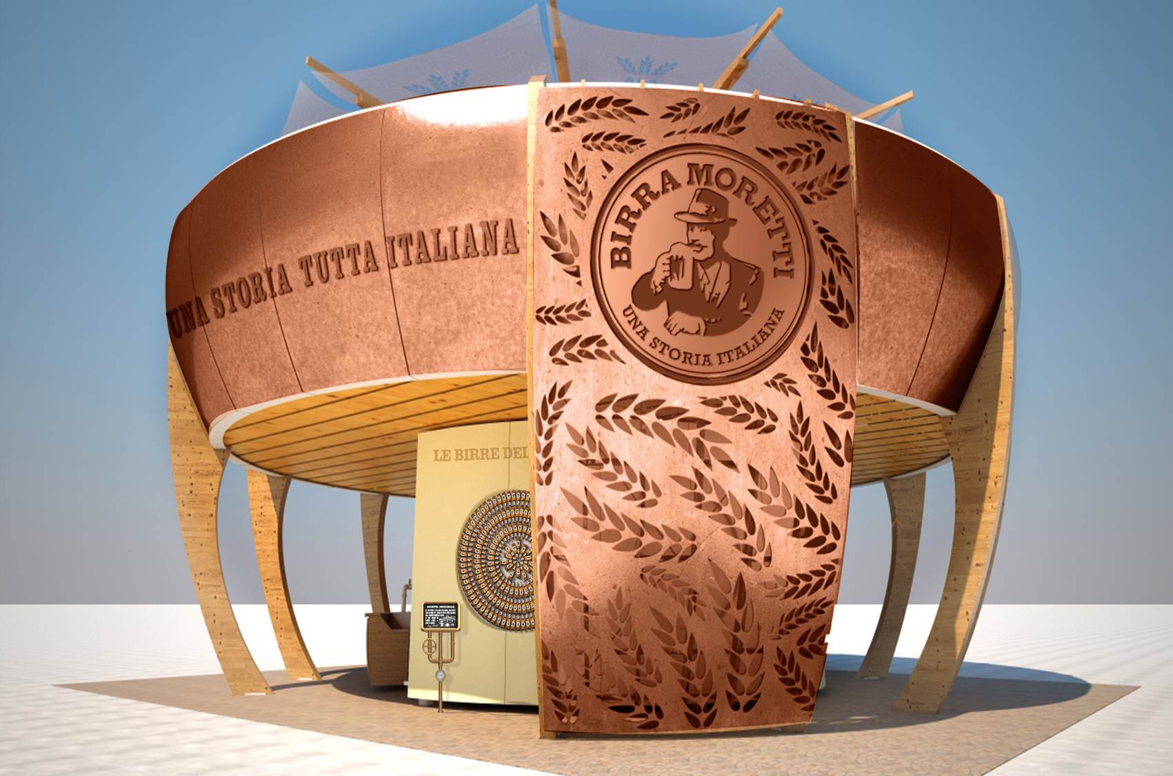 Birra Moretti, Official Beer Partner di Expo Milano 2015 ha disegnato per Expo una Bottega che incarna una tradizione proiettata nel futuro, un luogo accogliente, che sorge sul porfido di una piazza italiana.