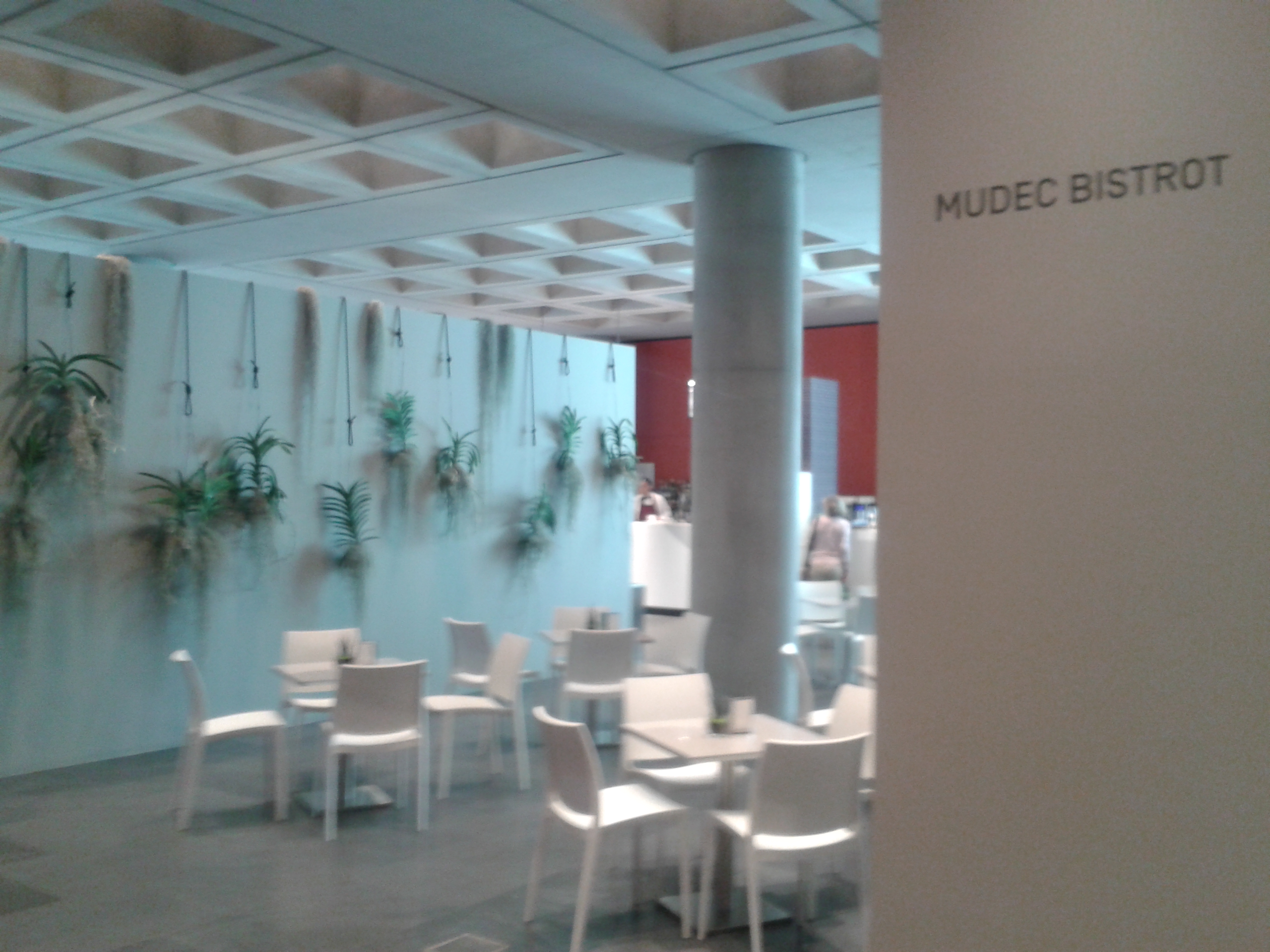 Mudec Bistrot, situato al piano terra dell’edificio, offre un servizio di caffetteria e piatti veloci per le esigenze di chi desidera effettuare una pausa pranzo rapida o fare un aperitivo in uno spazio insolito e di design. Colpiscono innanzitutto l’abbondanza di spazio e le installazioni vegetali che adornano una parete. L’offerta è appunto da bistrot, quindi si concentra su panini, insalate e piatti freddi, cui si aggiungono quattro piatti caldi del giorno. I prezzi sono adeguati alla formula “snella”, ma va sottolineato come i dettagli e la cura generale siano di livello superiore, a partire dalla mise en place e dal garbo del personale, per arrivare all’antipastino gourmet offerto nell’attesa e alla proposta di birra artigianale fuori carta.