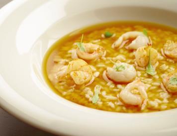 Risotto in brodo con teste di gamberi, una ricetta in cui prima viene cotto il riso e poi è aggiunto il brodo.